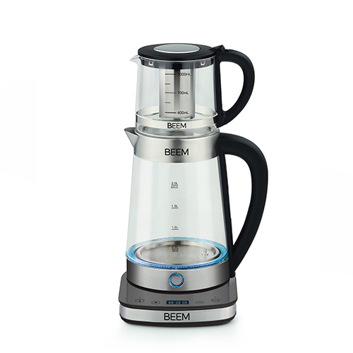 طراحی رویهم این چایساز فضای کمی از آشپزخانه را اشغال میکند و نظم بیشتری ایجاد میکند. بیم برای کتری و قوری از شیشه borosilicate مرغوب استفاده کرده است. این شیشه مقاومت بالایی در برابر حرارت و تغییرات دما دارد و ظاهر شفاف و زیبایی به دستگاه میبخشد.
